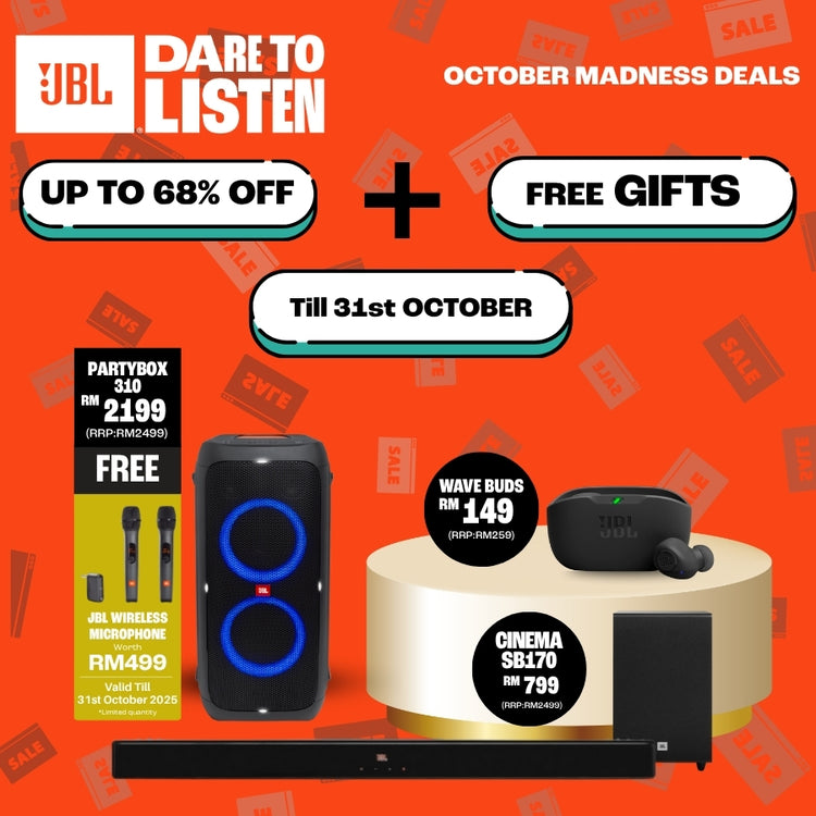 At JBL Malaysia’s online store, you'll find a range of products designed with precision and crafted for performance. Bask in the power of our renowned audio engineering and innovative sound technology. Whether you're an audiophile or just starting your sound journey, the JBL online store caters to every audio enthusiast.