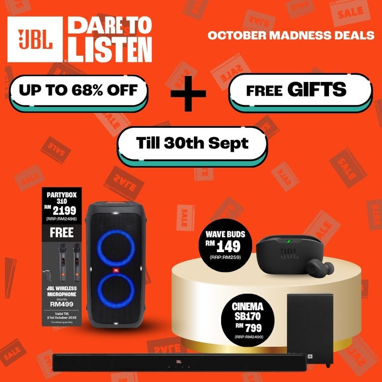 At JBL Malaysia’s online store, you'll find a range of products designed with precision and crafted for performance. Bask in the power of our renowned audio engineering and innovative sound technology. Whether you're an audiophile or just starting your sound journey, the JBL online store caters to every audio enthusiast.