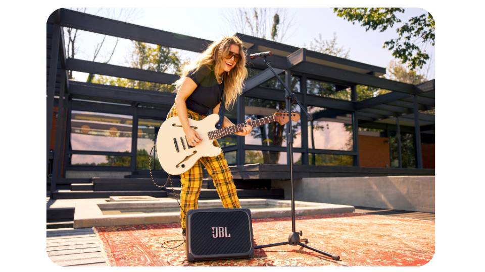 The JBL BandBox Solo lets you plug in and play along with the songs that inspired you to pick up an instrument. It is a compact practice amp and speaker with real-time AI that separates vocals and instruments, so you can solo, sing, or groove like you are already on stage. Bold JBL sound, built-in tools, you can easily bring it along anywhere.