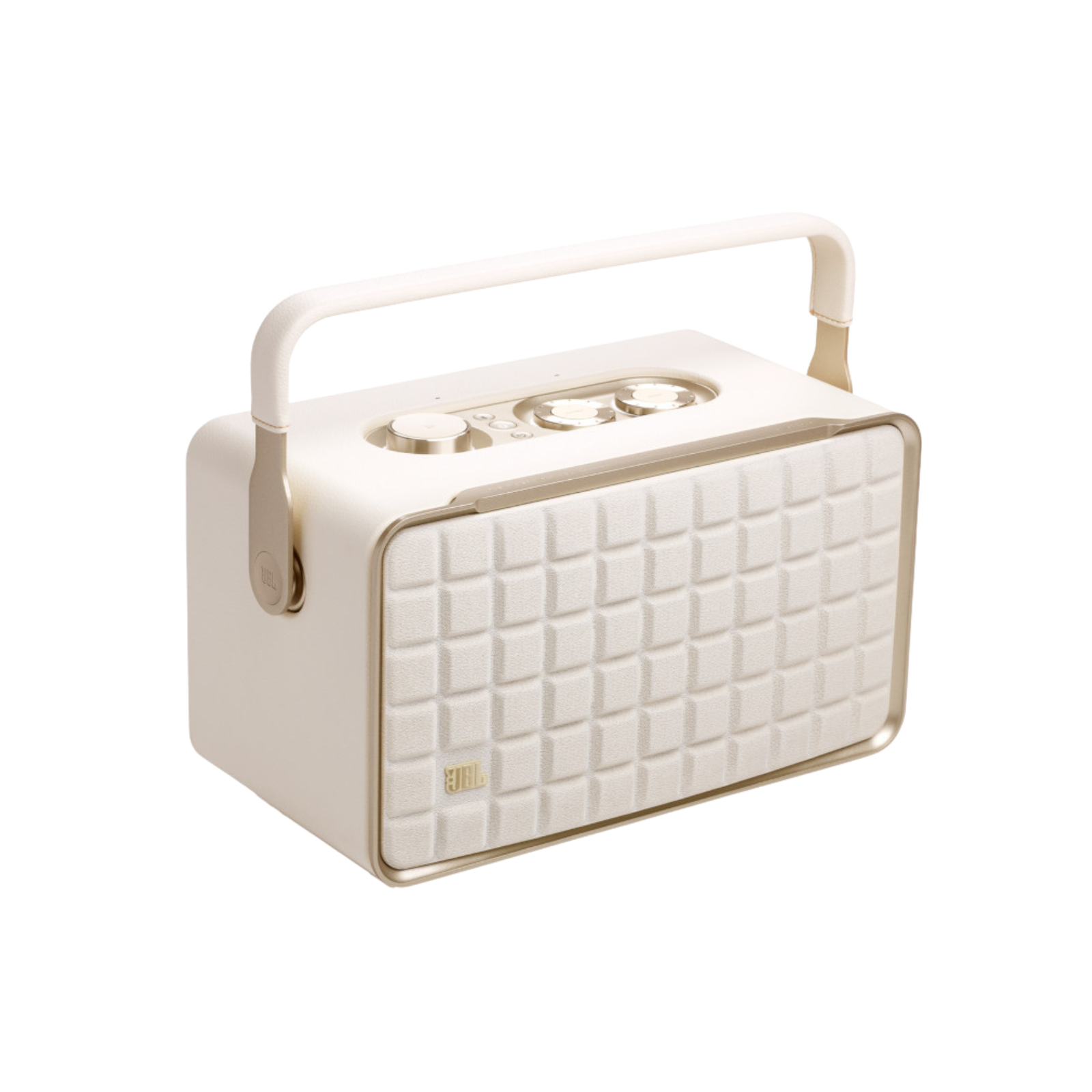 The JBL Authentics 300 is a celebration of JBL's timeless design ethos, reimagined for today’s audiophile. Its classic aesthetic, combined with contemporary elements, makes it a versatile addition to any interior. The speaker’s distinctive features include a custom leather-like finish, a gracefully crafted Quadrex grille, and a unique cast-aluminium handle, epitomising elegance and portability. Each design aspect contributes to an iconic visual appeal, complementing the auditory excellence.