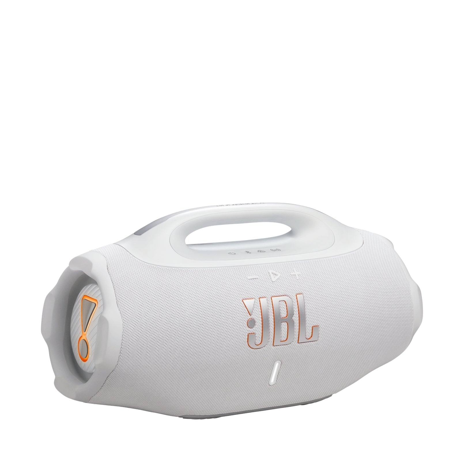 When it comes to bass, we like having options. Fire up the JBL Boombox 4 and you’ll get that classic JBL signature bass we all love. Want to take it deeper? Hit the Bass Boost button on the top panel—the JBL Horn mark glows orange, and boom, you’re in Deep Bass mode, where those two woofers and three passive radiators go all in. Want something tighter and more energetic? Tap the button twice, the Horn mark turns white, and you’re in Punchy Bass mode. Whatever the mood, we’ve got the bass to match.